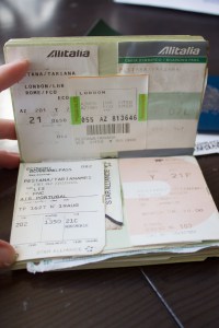 Old passports and tickets. / Passaportes antigos e passagens.
